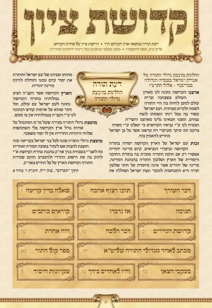 לנוכח דרישת ציון ההולכת וגוברת בקרב ציבורים נרחבים, כאשר רבים מבני היהדות הנאמנה מהרהרים בדעתם, וחלקם אף בקולם, בדבר האפשרות הריאלית של כינון שלטון יהודי המתנהג על-פי ערכי התורה, חוקיה ומשפטיה בארץ הקדושה, שזו משאת נפשה של האומה מאז חרב בית המקדש ועמו שלטון התורהף דא עקא שכמיהה עמוקה זו ציירה בדמיונם של רבים חזון […]
