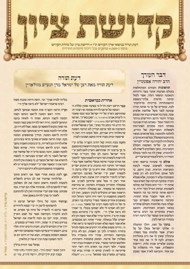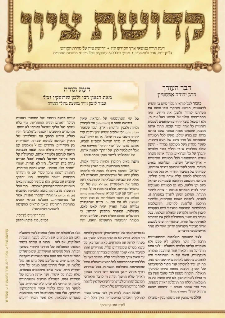 גליון 20 של "קדושת ציון" מהווה ציון דרך חשוב עבור העלון, והוא מהווה נקודה בה ראוי להתבונן על מה שהושג עד כה, מתוך צפיה לעתיד בו נצטרך להתמודד עם המציאות המתחדשת חדשות לבקרים. ישנם נושאים הזקוקים לחידוד, לליבון נוסף, להעמדה מדויקת יותר של הדברים על תקנן, בעוד שנושאים אחרים טעונים רק שינון וחזרה. ולאור דברי […]