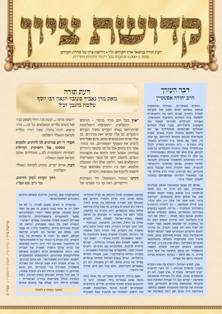 לכבוד מערכת העלון "קדושת ציון" שלום רב, אני קורא ותיק של עלונכם, ואני מחכה לו בשקיקה מדי חדש בחדשו. העלון מפיח רוח חיים בקרבי ובקרב רבים מחברי, אשר טרם הורגלו עד כה בהלך המחשבה הנושב מבין העלון. היינו שקועים עד כה באווירת הנכאים שנשתרשה בעת גלותנו בין האומות, אוירה המשתקפת מבין פיוטי הסליחות והקינות למיניהם, […]