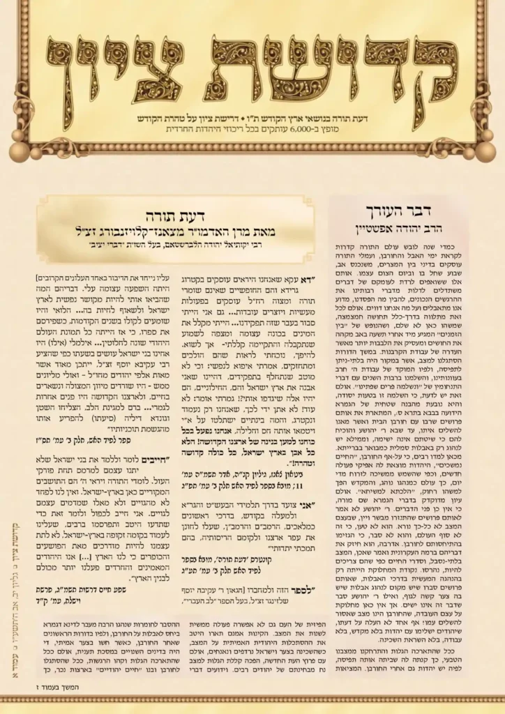 לכבוד מערכת קדושת ציון והכותבים הנכבדים הי"ו, ייש"כ על עבודתכם המעולה והמשובחת, שמעוררת דרישת ציון, וידוע שע"י הדרישה גופא מקרבים את הגאולה, כדכתיב "אתה תקום תרחם ציון… כי רצו עבדיך…". כפי שכבר כתבתם בכמה מאמרים, בזמן הזה אנחנו עומדים לאחר קיבוץ רוב הגליות, ואנו ממתינים ומצפים כעת למלוכה ע"פ התורה, ובוודאי שגם נכלל בזה החזרת […]