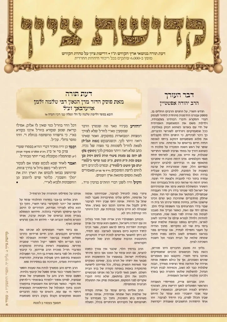 תורת ארץ ישראל – כגוף עם נשמה בגליונות הראשונים הובאו מאמריהם הנפלאים של ידידי הרב אריה סגל והרב יחיאל מאיר, בהם עוררו על עניין התורה והמצוות שבארץ ישראל, שהן בשלמות נשמתן ופנימיותן, יותר מאשר התורה והמצוות שבזמן גלותנו בארץ העמים, שם הינן מבחינה מסוימת כגוף בלי נשמה, שאין המצוות שם אלא כעין "הציבי לך ציונים", […]