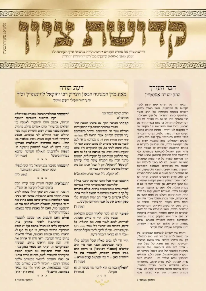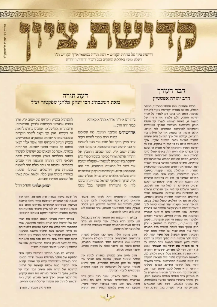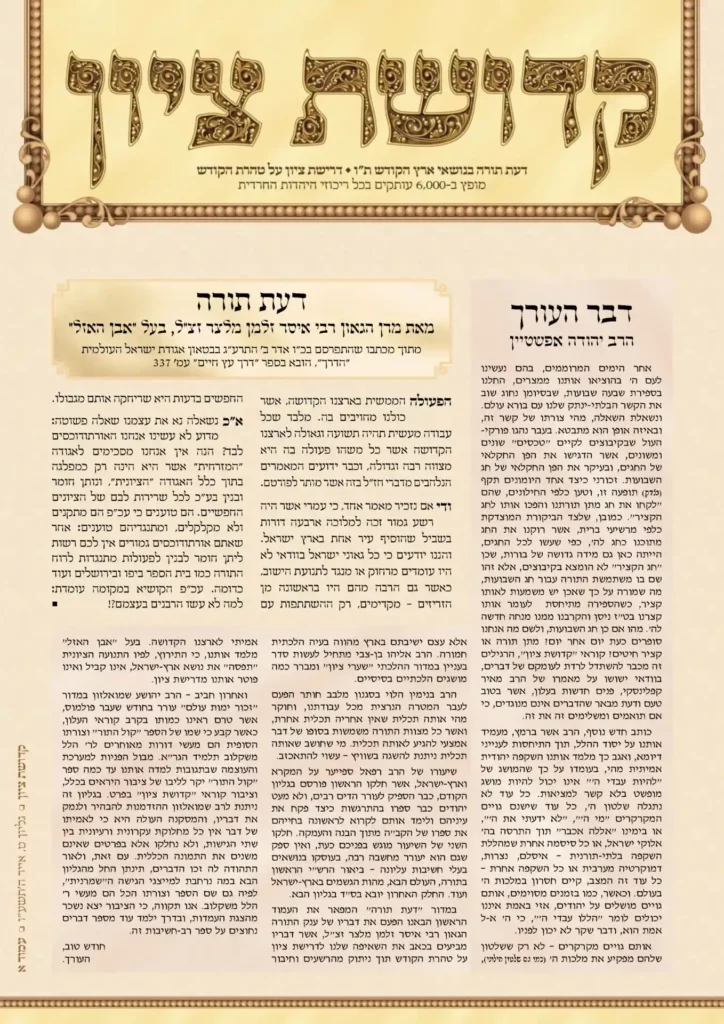 רבים שואלים, מהו המסר המרכזי, המסר הכולל, שרוצה אגודת "קדושת ציון" להנחיל לציבור. האם אנו באנו רק לעורר על עניין ישיבת הארץ, ללבן ולברר את גדריה של מצווה זו, ושמא כוונתנו לעורר על היחס הנכון למוסדות השלטון והדרך לנטילתם והפיכתם למוסדות הפועלים לפי תורה. אולם דומני, כי באמת אין כל חילוק בין הדברים, עניינה של […]
