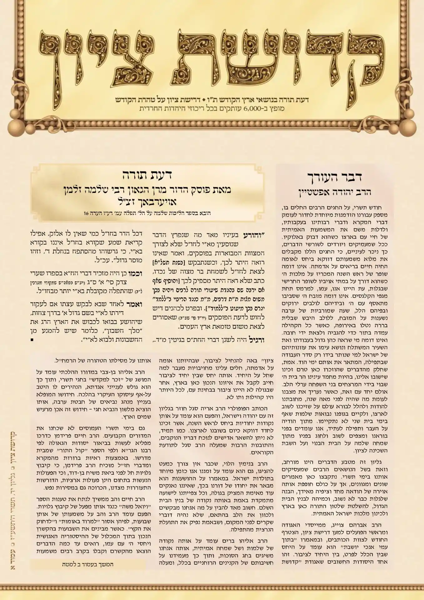 דעת תורה מאת פוסק הדור מרן הגאון רבי שלמה זלמן אויערבאך זצ"ל